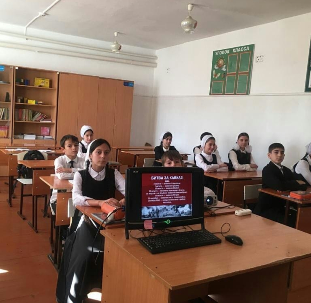Урок мужества " Освобождение  Кавказа" провели ученики 7 "в " класса (кл.рук. Мальсагова Малика Хароновна)