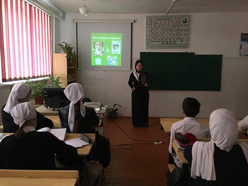 Хадижат Самудовна провела позновательную беседу по профилактике гриппа и ОРВИ с учащимися 8 б кл.