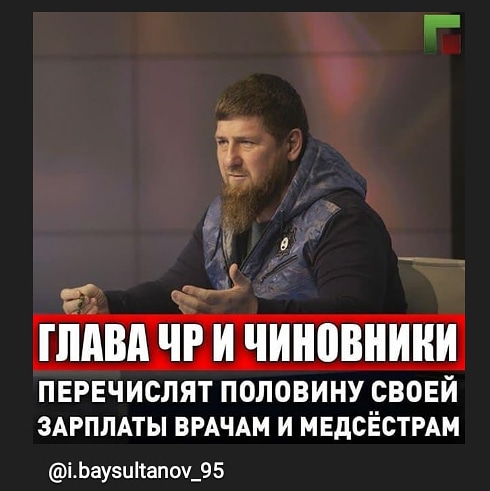 Об этом в своем Telegram-канале сообщил Рамзан Кадыров. Через оперативный штаб к нему обратились члены правительства, депутаты парламента, главы районных и поселковых муниципальных образований, руководители управлений, отделов, ведомств, командный состав подразделений МВД и УФСВНГ РФ по ЧР, начальники отделов полиции и другие с предложением перечислить половину месячной зарплаты на счёт поддержки врачей и медсестёр, работающих с больными Covid-19. Руководитель региона поддержал эту инициативу. «Искренно благодарен всем, кто решил помочь медицинским работникам! Они этого заслужили своим героическим трудом! Данное решение ещё раз подтвердило, что в команде, основанной Первым Президентом ЧР, Героем России Ахмат-Хаджи Кадыровым трудятся настоящие патриоты Отечества, достойные сыны Нохчийчоь, готовые на любые поступки ради народа. Глубоко признателен всем, кто не остался в стороне от всеобщего дела спасения нации от невиданной ранее угрозы», - написал Кадыров. Он также отметил, что именно врачи являются национальными героями. Прекрасно зная, что нахождение в одной палате с человеком, заразившимся короновирусом, представляет реальную угрозу жизни и здоровью, они днём и ночью сражаются, спасая сотни и тысячи жизней. «Мы с глубокой скорбью воспринимаем поступающие из разных стран сообщения о болезни и кончине медицинских работников. Народы перед ними в неоплатном долгу. Хочу выразить слова признательности членам Оперативного штаба во главе с дорогим БРАТОМ, Председателем Парламента ЧР Магомедом Даудовым, которые ежедневно решают сотни проблем. Вместе мы победим |