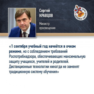 28.08.2020| На все вопросы в режиме реального времени отвечали Министр просвещения Сергей Кравцов, федеральные и региональные эксперты в сфере образования. 📌 Среди волнующих тем – организация образовательного процесса в новом учебном году, возможности и ограничения, ожидающие школьников ввиду текущей эпидемиологической ситуации, проведение всероссийских проверочных работ, проекты в области культуры и патриотического воспитания школьников. 📺 Трансляция проходила в сообществе Минпросвещения в соцсети «ВКонтакте». Запись Общероссийского родительского собрания вы можете посмотреть по ссылке: vk.com/wall-30558759_188410. |