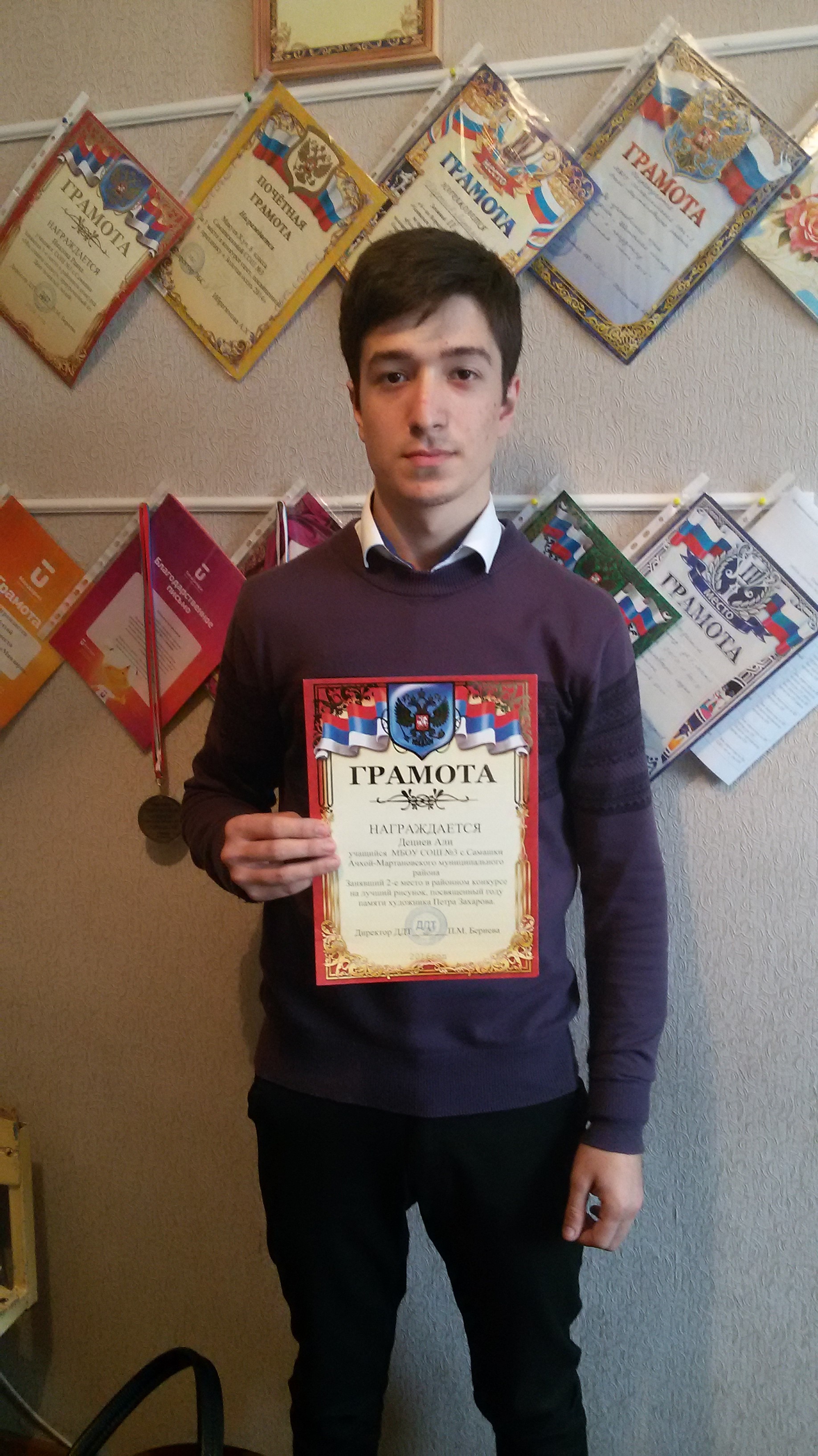 Ученик 11б касс Дециев Али занел 2-е место в районном конкурсе на лучший рисунок, посвященный году памяти художника Петра Захарова.