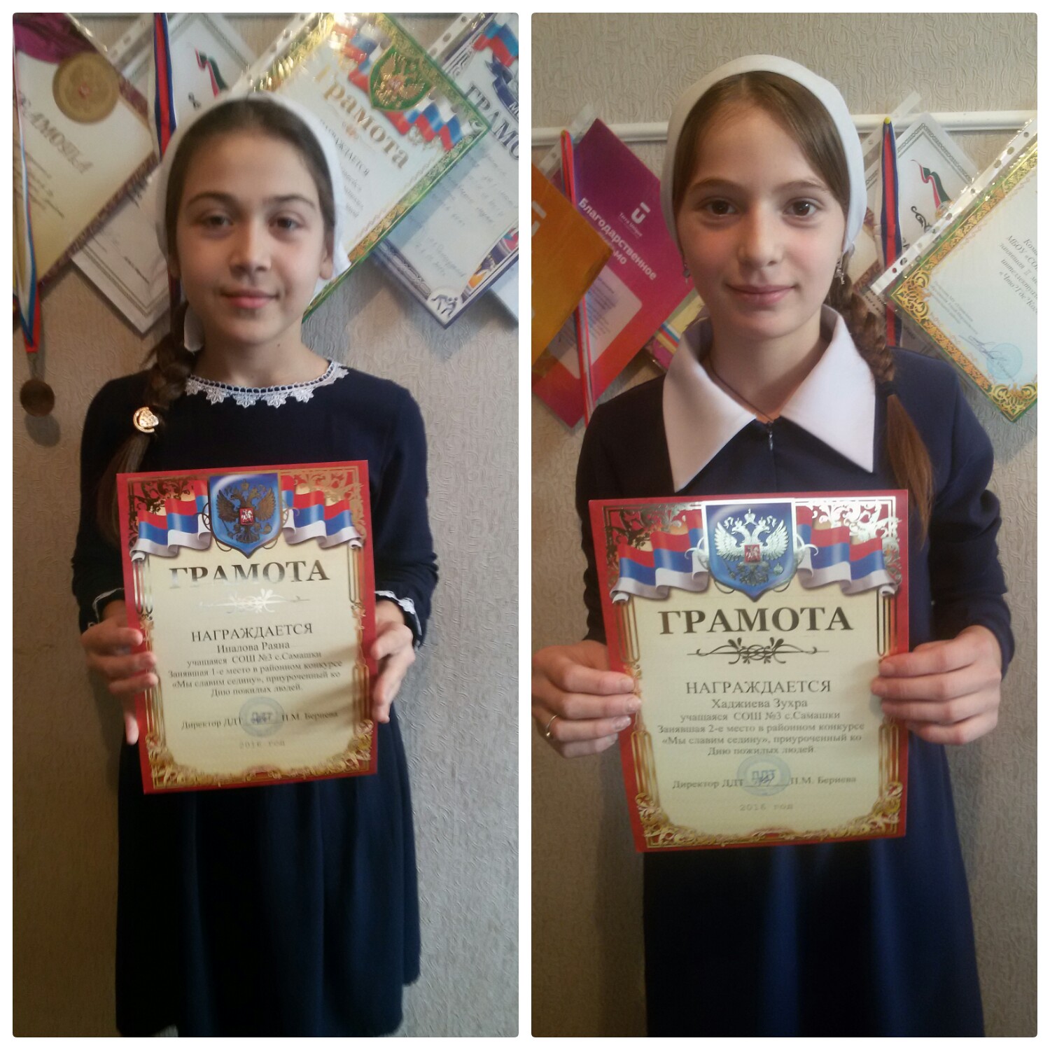 Ученицы Хаджиева З, Иналова Р МБОУ "СОШ №3 с. Самашки" заняли 1,2 места в районном конкурсе "Мы славим седену," приуроченный ко Дню пожилых людей