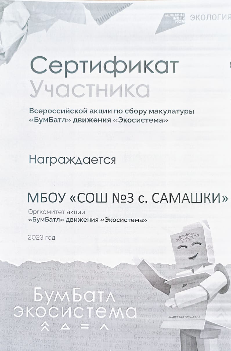 19.10.2023В школе с 15 октября стартовал экологический проект по сбору макулатуры в рамках Всероссийской акции «БумБатл».