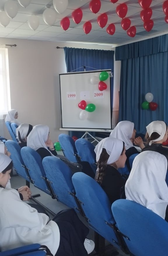 15.04.202415 апреля состоялось мероприятие, посвященное Дню отмены режима КТО в Чеченской Республике и Дню мира. Организаторы мероприятия донесли до детей о значении отмены режима КТО, о событиях тех лет, которые способствовали возвращению жизни в Чечне в мирное русло. Учитель истории и обществознания, Юсупова М.Л., рассказала, что это очень светлый праздник, и отмечается он в нашей республике с 2009 года после того, как Президент ЧР - издал указ об отмене режима контртеррористической операции на территории ЧР. Режим КТО действовал в республике с 1999 года. 10 лет жители ЧР ждали этой даты. Даже после принятия Конституции ЧР в 2003 году режим КТО не был отменён. Лишь по прошествии ещё 6 лет жители ЧР, наконец, дождались отмены режима КТО в ЧР. Это важное событие дало нашей республике много: начались инвестиционные проекты, возродился аэропорт, театры, школы, дома культуры и много других зданий. Поэтому этот день является для чеченского народа очень значимым и важным днем.