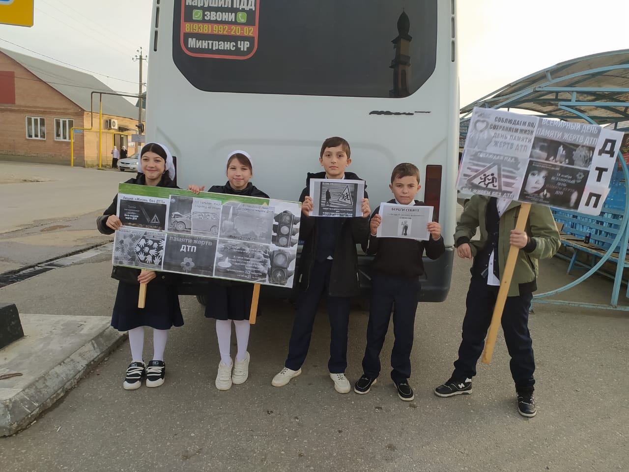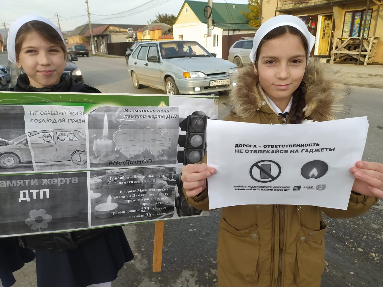18.11.2024Учащиеся нашей школы приняли участие в флешмобе, который проводится в рамках мероприятий, посвященных Всемирному дню памяти жертв ДТП"Жизнь без ДТП".Ребята изобразили сигналы светофора. руководитель ОБЗР Хукушева Л.М. напомнила ребятам о правилах поведения при переходе проезжей части, объяснила, почему нужно быть особенно внимательным на дороге, почему в темное время нужно носить светоотражающие элементы на одежде или рюкзаках. Затем полученные знания школьники закрепили на практике, под присмотром руководителя ОБЖ они переходили улицу с оживленным движением.