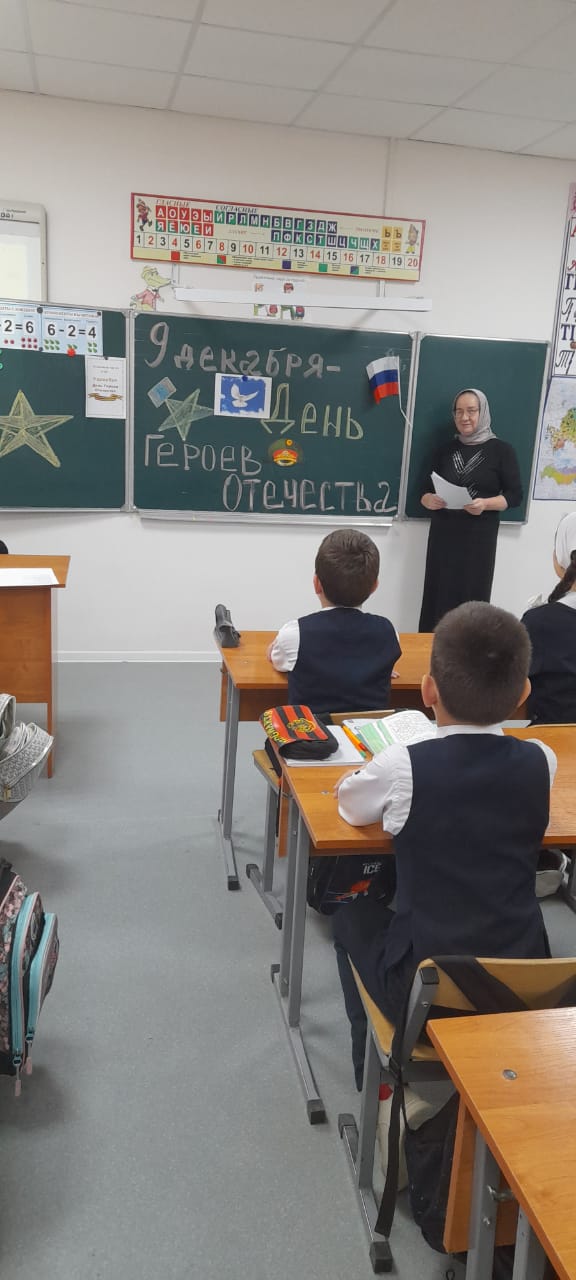 09.12.2024В преддверии Дня героев Отечества классные руководители провели для обучающихся урок мужества "День Героев Отечества".Классные руководители познакомили ребят с историей праздника.Ребята узнали о том,что во все времена наш народ защищал свою землю, вспомнили о знаменитых и выдающихся полководцах,стоявших во главе русской армии.В ходе урока также шел разговор и о Героях современной России,тех,кто порой ценой собственной жизни сражался и сражается за наше счастливое будущее.В завершении урока классные руководители особое внимание уделили и нашим землякам,бывшему выпускнику нашей школы Санузову И.и т ем,которые в данный момент находятся в СВО