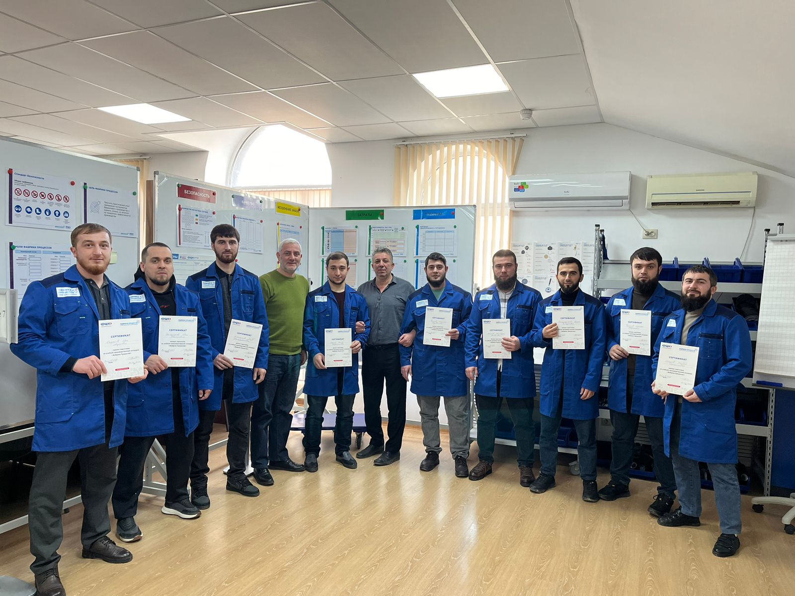 24.02.2025Сотрудники «Теплостройпроект-С» приняли участие в тренинге.В рамках реализации федерального проекта «Производительность труда» сотрудники одного из его участников - предприятия ООО «Теплостройпроект-С» приняли участие в тренинге, который прошел на площадке Фабрики процессов. Занятия проводились специалистами – тренерами Центра «Мой бизнес» Чеченской Республики.«Фабрика процессов» – это учебная площадка, созданная в рамках реализации мероприятий проекта «Производительность труда».«На таких площадках участники в реальном производственном процессе получают практический опыт применения инструментов бережливого производства, которые, соответственно, способствуют повышению экономических показателей на производстве»,- отметил заместитель министра экономического и территориального развития Чеченской Республики Жамалдаев А-Р.Ш.По его словам, проведенный тренинг должен показать, как применение инструментов бережливого производства в офисе влияет на ключевые показатели деятельности предприятия.«Фабрика процессов как методика обучения позволяет в игровой форме получить представление об оптимизации процессов, последовательности действий по их улучшению и основных инструментах бережливого производства, научиться определять и устранять причины неэффективности и таким образом повышать качество работы», - отметил Жамалдаев А-Р.Ш.По завершению тренинга, каждому из его участников были вручены специальные дипломы.