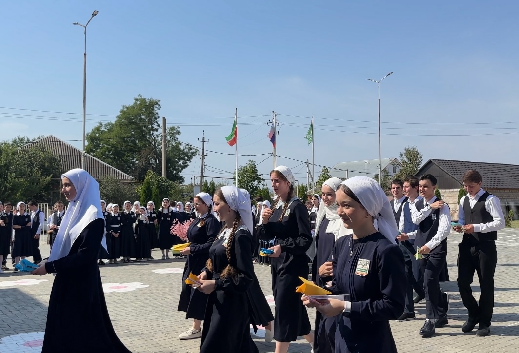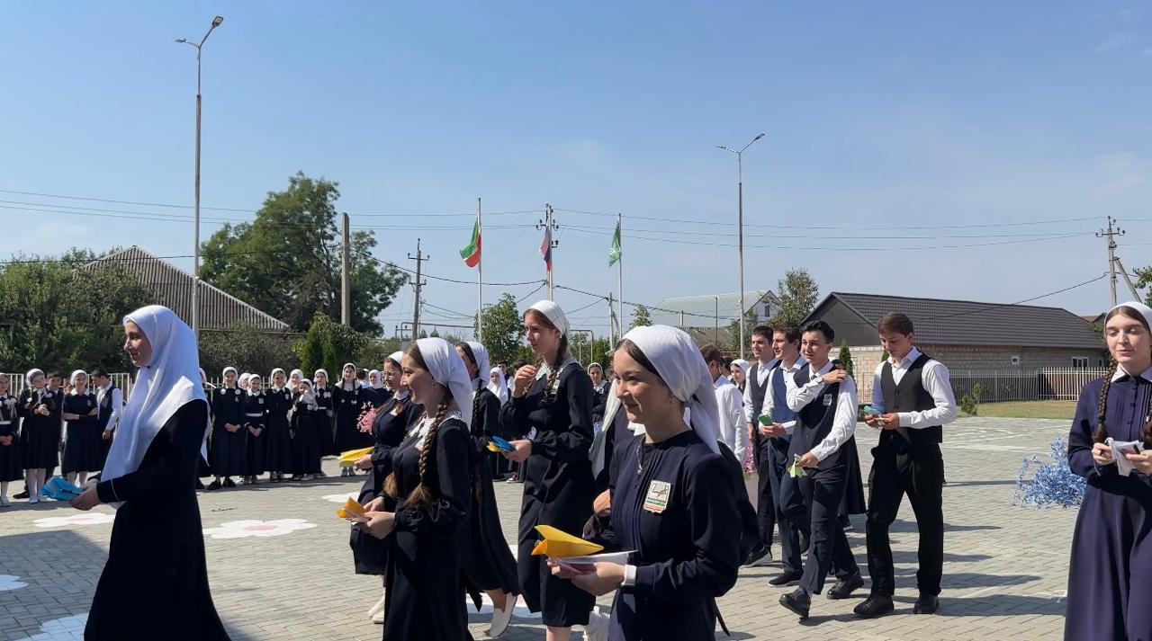 01.09.2025Первый звонокСегодня,1 сентября,наша школа вновь распахнула свои двери для нового учебного года.Традиционно,под звуки гимна Российской Федерации и Чеченской Республики,знаменная группа торжественно подняла флаг России,ознаменовав начало первого этапа.С теплым напуствием и пожеланиями успехов выступила директор школы,Атабаева Р.З.Она не только вдохновила всех на новые победы,но и провела волнующую церемонию награждкния отличившихся ребят и педагогов.Праздник почтили своим присутствием почетные гости: ведущий специалист РОО Берзигов С- М.Х,представитель администрации г.Ачхой- Мартан Исмаилов А.Ш.Они пожелали первоклассникам легкой и интересной учебы.По сложившейся дрброй традиции Всероссийского проекта " Навигаторы детства", выпускники вручили учащимся 1 классов символичные " Самолетики будущего", на которых написали искренние пожелания,а советник директора по воспитанию,Могомадова П.А. рассказала первоклассникам трогательную легенду о самолетике,настраивая на полет к новым знаниям.