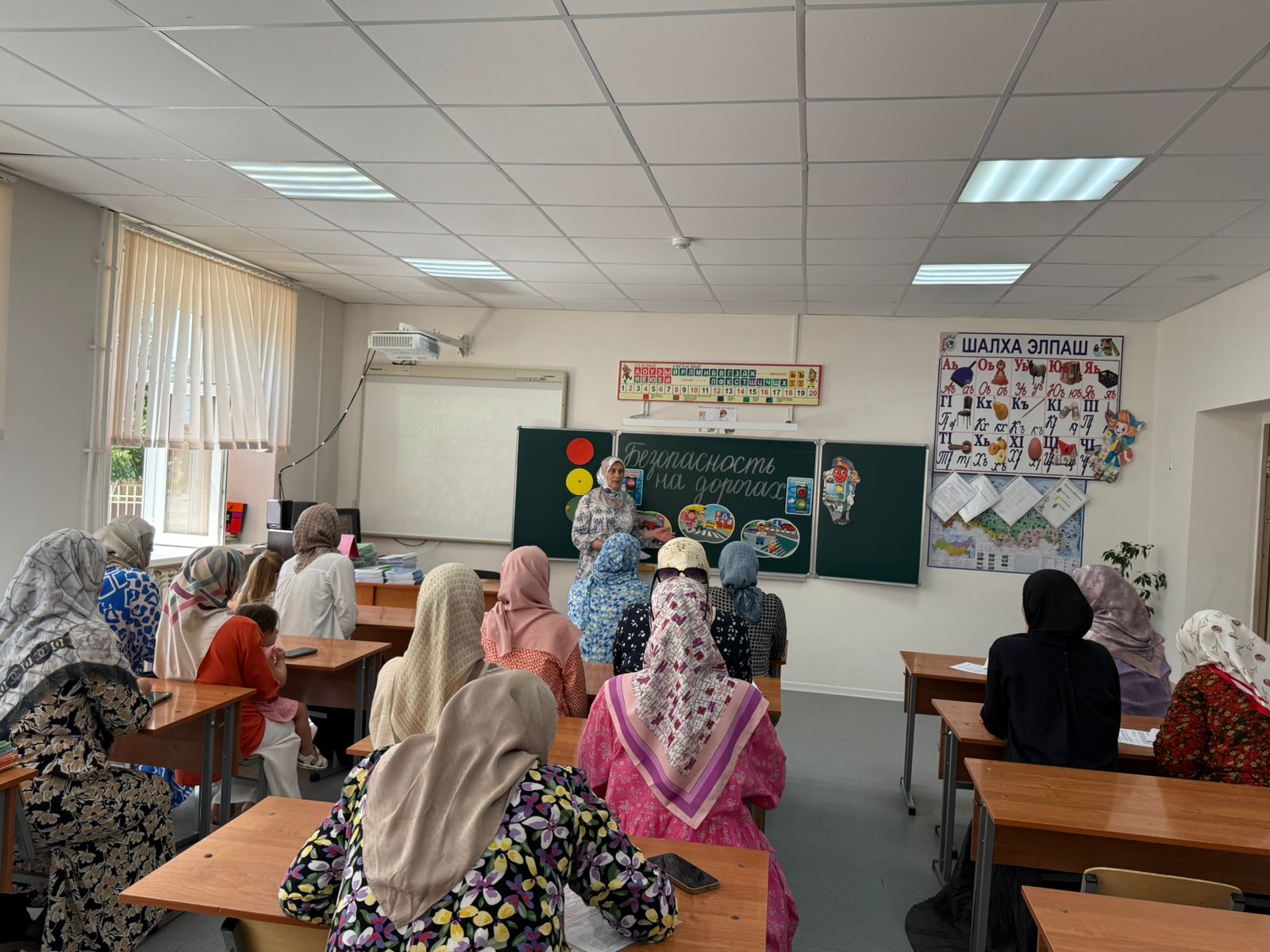 Коллектива школы по профилактике дорожно= транспортного травматизма в 2024- 2025 учебном году рассказала зам.директора по ВР Хаджиева М.Д..В своем выступлении она подчеркнула,что школа играет большую роль в воспитании культуры участников дорожного движения, но именно родители играют большую роль в воспитании культуры участников дорожного движения,но именно родители играют основополагающую роль в восприятии окружающего мира и моделировании ребенком поведения и отношения взрослого к соблюдению неободимых для жизни Правил доржного движения.